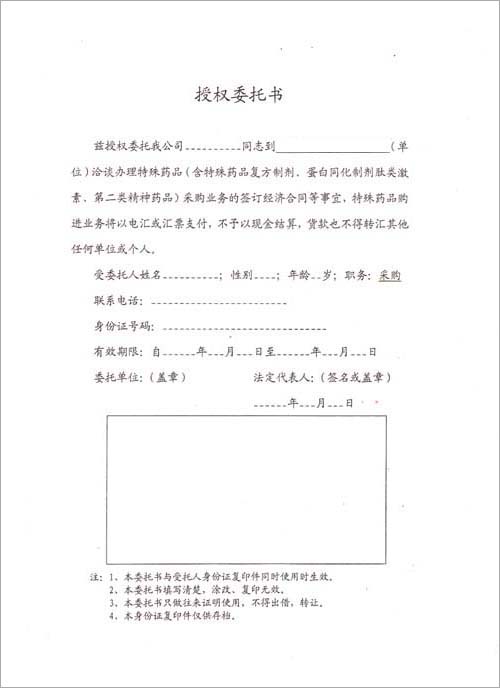 3.采购特殊药品委托书、身份证复印件(仅限有购进需求的客户提供)